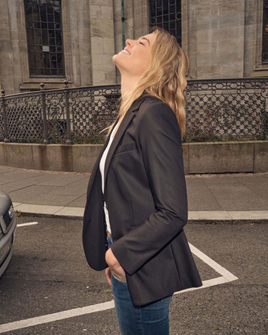Unser Model ist 176 cm und trägt die Größe 36